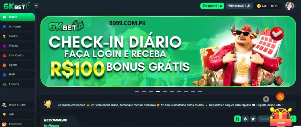 The 6KBet looks modern with a clean interface and fast load times, making gameplay smooth and easy. It offers many games and quick deposits or withdrawals with local options like EasyPaisa and JazzCash.