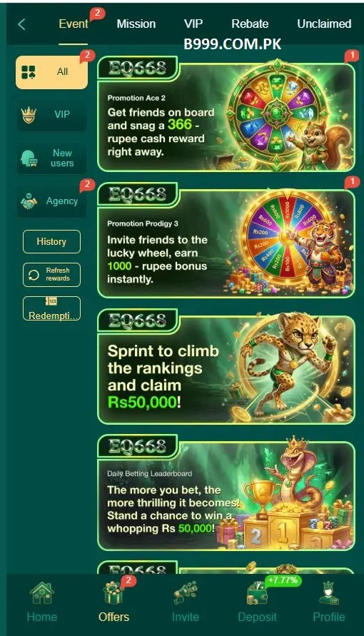 EQ668 in Pakistan is an online mobile gaming platform that offers users different casino-style games for entertainment. It is designed for smartphone users who enjoy quick and simple gameplay. If you want to increase your bonuses and rewards, you can also check out our previous app. Cash PK